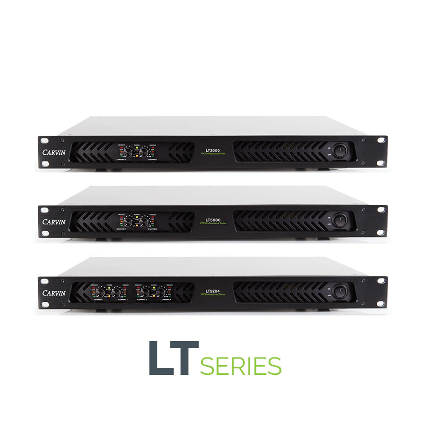 The LT Series power amplifiers feature cutting edge PFC technology allowing high power output in a space saving 1U frame design. Multi channel models up to 4 channels are available.
